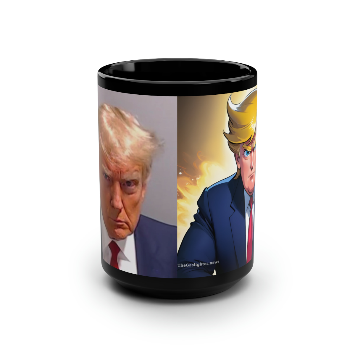 In this one-of-a-kind coffee mug, an actual photograph of Donald Trump is on one side, and when you turn the mug, you can see what The Don sees when he looks at that same picture. It’s a Gaslighter specialty.